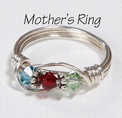 Personalized Sterling Silver Mom's Family Ring Three Swarovski Multistone Crystals. Mother's Day, Christmas, Birthday, Valentines day, Anniversary, New Baby.