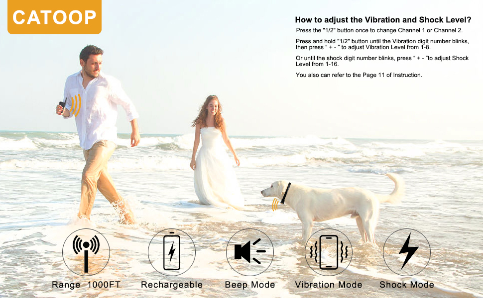1. The CATOOP Dog Training Collar is the perfect solution for all your dog training needs when you want to improve your dog's behavior at home or in a social setting. Safe, humane and effective, these collars are perfect for dogs of all shapes, sizes and breeds. Thanks to the adjustable static shock, vibration and buzzer stimulation modes, you will find a safe stimulus that suits your dog's behavior and needs.