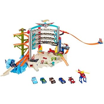 Explore the Hot Wheels Super Ultimate Garage for endless storytelling possibilities and opportunities for heroic, save-the-day moments! Standing over 3 feet tall and storing over 140 cars, this is the biggest Hot Wheels playset ever! Fuel your kid's imagination exploring the different, exciting play zones, like the drive-up diner and car wash; the dynamic, moving parts, including a motorized elevator; a massive jet plane with a penthouse landing pad; and a menacing gorilla determined to swipe your cars out of the elevator. Crank up the competition with a thrilling side-by-side racetrack that starts at the penthouse so they can race their friends the Hot Wheels way! The garage also has multiple connections points so they can connect to other Hot Wheels sets for a customizable world of track and play. Includes 4 cars and 1 Jet plane.
